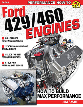 In Ford 429/460 Engines: How to Build Max-Performance, which was written by Ford expert Jim Smart, all aspects of performance building are covered, including engine history and design, induction systems, cylinder heads, the valvetrain, camshaft selection, the engine block, and rotating assemblies. The best options, optimal parts matching, aftermarket versus factory parts, budget levels, and build levels are also examined. The 429/460 engines are a good platform for stroking, so that is covered here as well.
