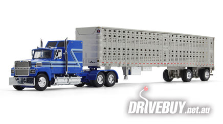 DCP by First Gear Blue/Silver Ford LTL 9000 Truck w/ Aerodyne Sleeper & Livestock Trailer 1/64