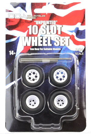 Custom 10 Slot Unpainted Wheel and Tyre Set 1/24 - DDA Model Kit - Slammed