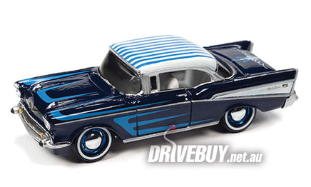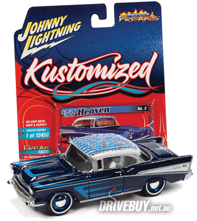 You won't find a cooler diecast model around than this 1957 Chevy from Johnny Lightning's 'Kustomised' series. Traditional scallops and pinstriping combined with its Cobalt Blue Metallic finish makes it stand out from the crowd. You'll be "street freakin'" in 1/64 scale.