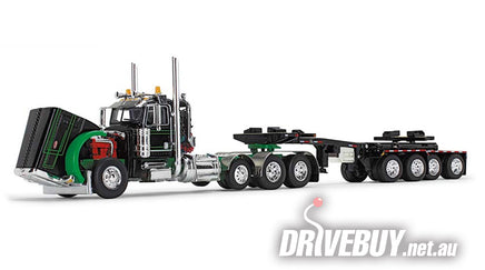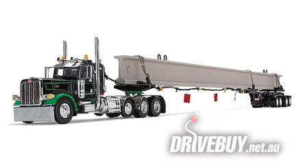 DCP by First Gear Black/Green Peterbilt Model 389 Truck w/ 4-Axle Hydra-Steer Trailer With Bridge Beam Section 1/64