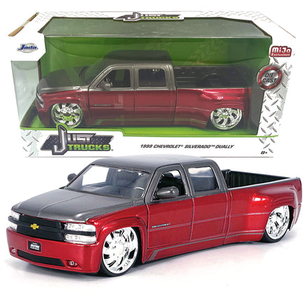 JADA Just Trucks 1999 Chevy Silverado Dually Red w/ KMC Wheels 1/24