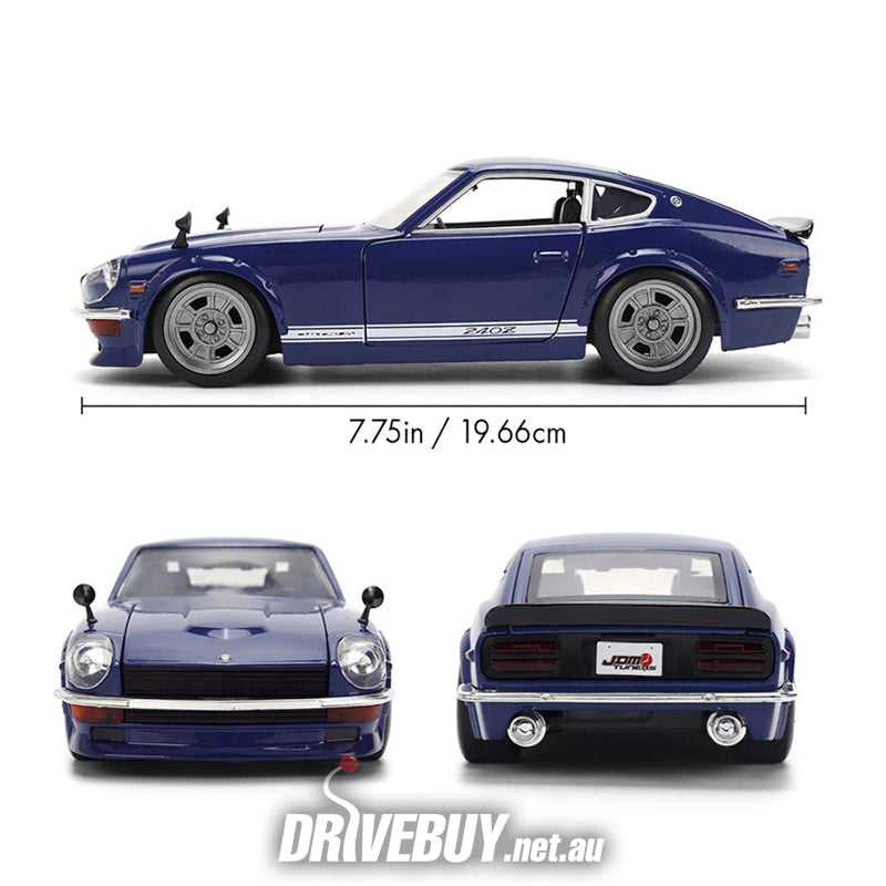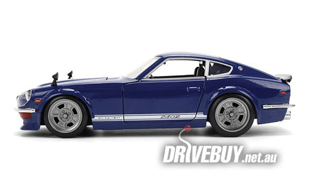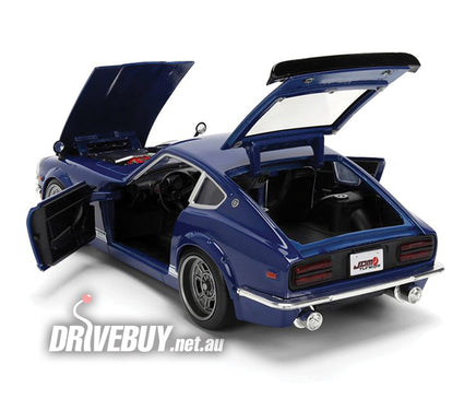 A hot street 1972 Datsun 240Z in blue with black interior.