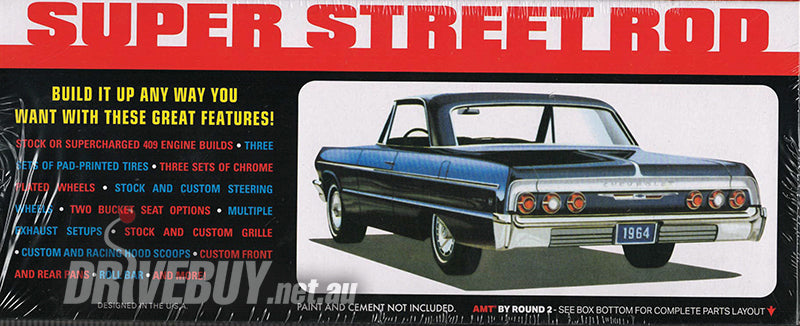 AMT presents the 1964 Chevrolet Impala Super Street Rod reissue. This 3 in 1 kit can be built as stock, racing, or custom. Add it to your collection today!