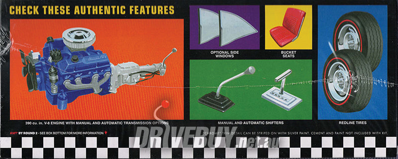 The 1967 Mercury Comet Cyclone GT is a solid build for muscle car enthusiasts. Fully paintable, it includes an EXPANDED water-slide decal sheet with colorful options, detailed exterior badging, and dashboard gauges. Build it to your liking using these great features: detailed 390 cubic inch V-8 engine with manual or automatic transmission, optional shifters, detailed chassis and interior with bucket seats, authentic chrome parts, dual exhaust system, redline tires, optional side windows, and more. Wrapped up nicely in vintage-style packaging!