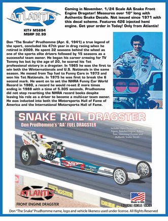Atlantis Don The Snake Prudhomme Front Engine Dragster Model Kit 1/24