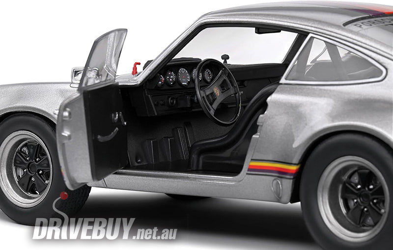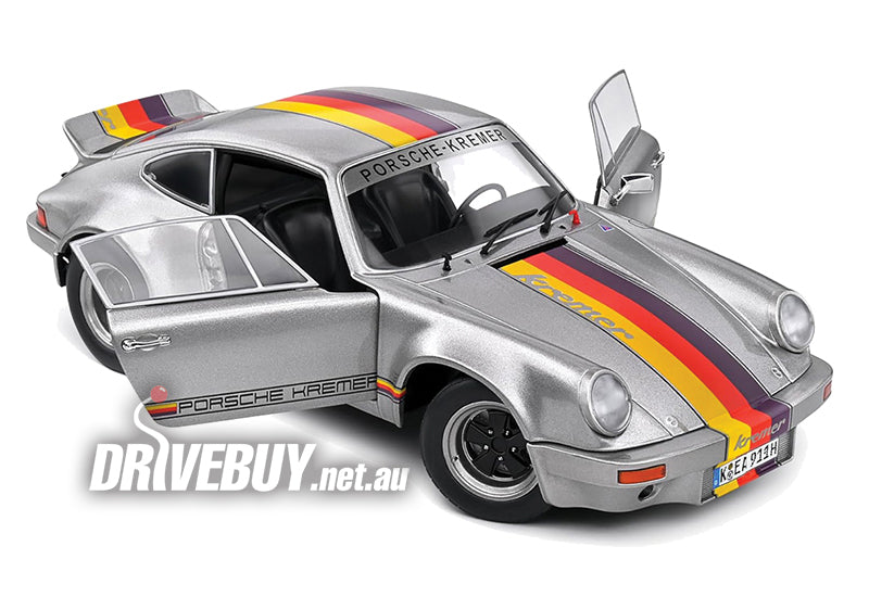 1973 Porsche 911 in silver with black interior and Kremer Rally livery.