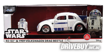 1959 VW Volkswagen Drag Beetle 1/24 + R2D2 Droid - Jada Diecast - Disney Star Wars