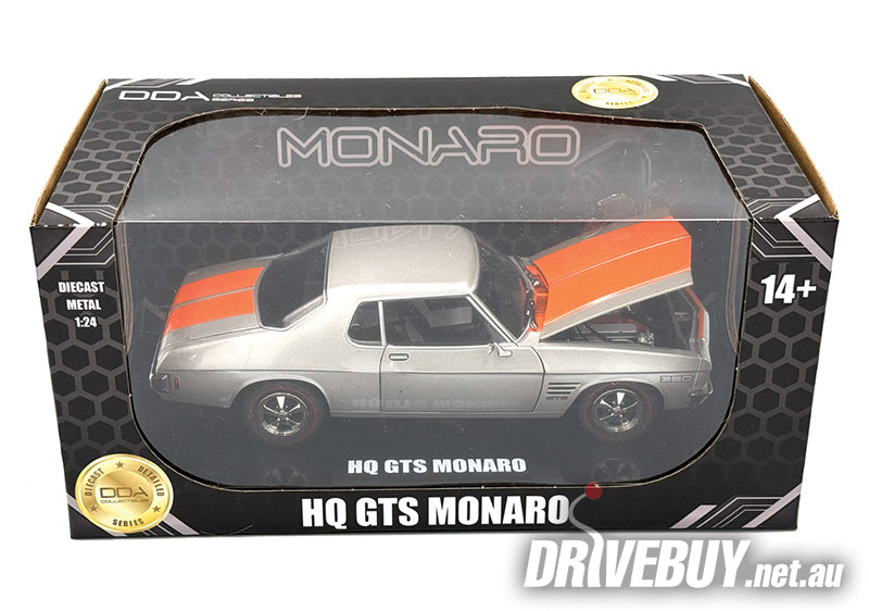 1972 Holden HQ GTS Monaro 1/24 - DDA Diecast - Silver with Orange Stripe