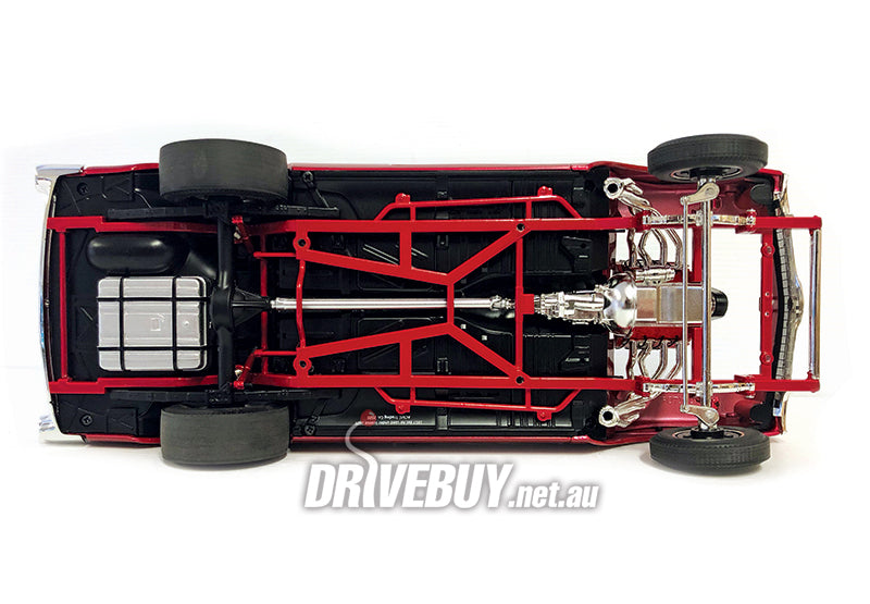 Monsters aside, this heavily detailed scale model is just stunning in deep red with contrasting chrome. The straight axle front end, wheels and exterior trim are relevant to a time when race cars looked as good as they went. Not that this is a strip-only car - the dual bucket seats and MR GASSR Georgia licence plates place this supercharged Chevy on any street corner on a Saturday night. Our favourite detail?
