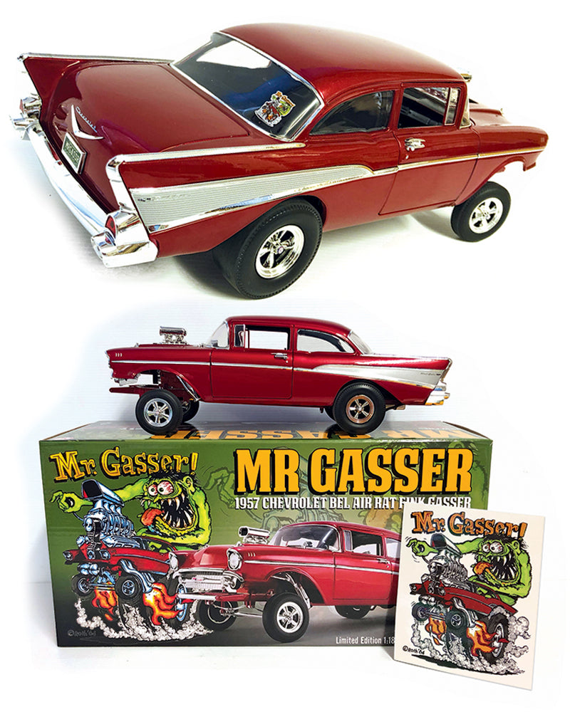 ACME have teamed up with the Roth family to bring you this memorable rendition of a classic Chevy supercharged gasser. Ed ‘Big Daddy’ Roth started a revolution with his crazy show cars and monster art, including Mr Gasser, a character immortalised with a model kit in 1963, featuring - you guessed it - a dark red 1957 Chevy with one of Roth’s monsters jamming through the gears!