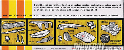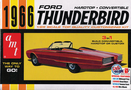 AMT's 1/25 scale 1966 Ford Thunderbird Hardtop-Convertible is great project for any experienced modeler who is a fan of classic customs. This 3 in 1 kit can be built as convertible, hardtop or custom. Add it to your collection today!