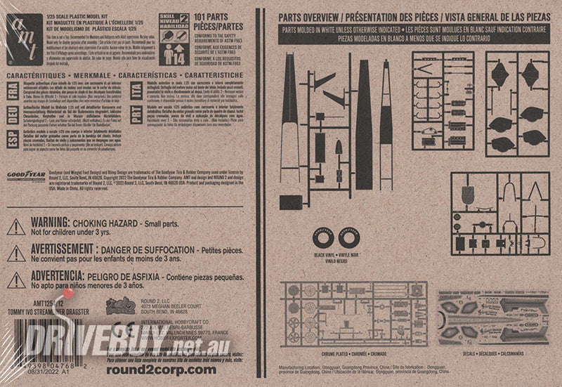 This Retro Deluxe kit includes a fully paintable body, expanded water-slide decals, a supercharged 426 HEMI® engine, airfoils, Deist drag chutes, covered front wheels, and big pad-printed slicks. The newly tooled body shell improves fit and assembly, all presented in vintage-style AMT packaging.