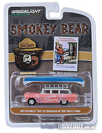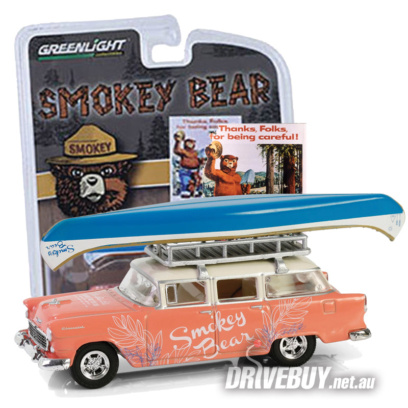 Greenlight Smokey Bear 1955 Chevy Townsman Wagon + Canoe 1/64