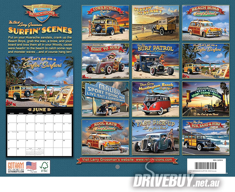 Larry Grossman / Retrovisions 2026 Wall Calendar; Surfin' Scenes