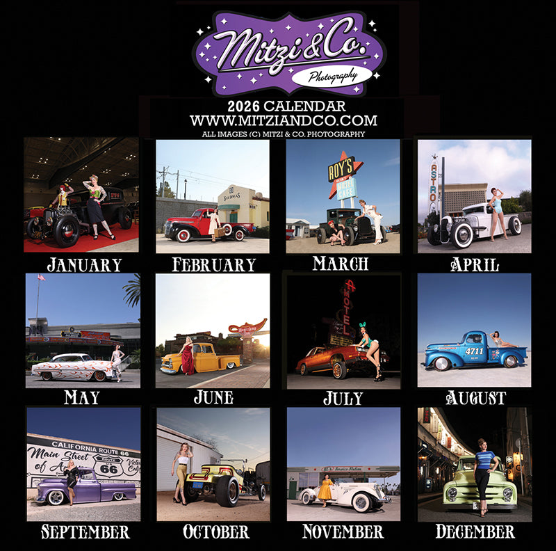 Pro pin up photographer Mitzi Valenzuela never fails to impress us with her annual pinup calendar - the models are beautiful and the cars equally as stunning.