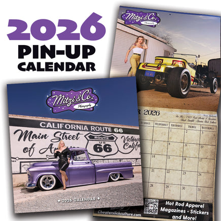 This 12 month calendar is all class from January through December and will always be a collectable. When the year is over, you can use it to decorate your hot rod pin up palace!